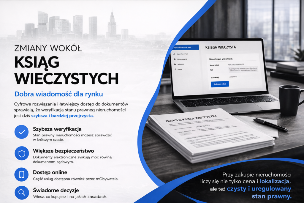 Od strony praktycznej coraz ważniejsze stają się rozwiązania cyfrowe związane z księgami wieczystymi i dostępem do dokumentów.